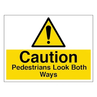V Safety Caution Pedestrians Look Both Ways Large Landscape 400 x 300 mm 3mm Aluminium Composite Sign