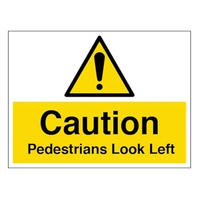 V Safety Caution Pedestrians Look Left Large Landscape 400 x 300 mm 3mm Aluminium Composite Sign