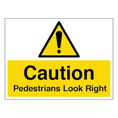 V Safety Caution Pedestrians Look Right Large Landscape 400 x 300 mm Self Adhesive Vinyl Sign