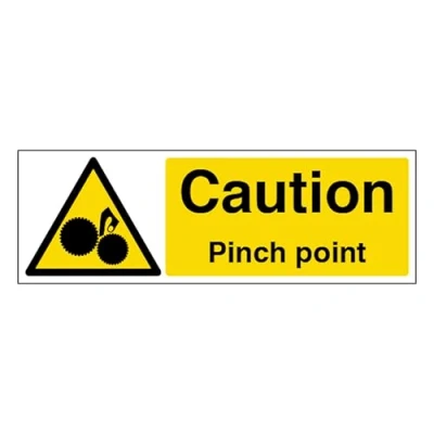 V Safety Caution Pinch Point Landscape 600 x 200 mm 2mm Super Tough Rigid Plastic Sign