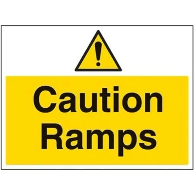 Helps to fulfil legal obligations to inform employees, visitors and the general public of potential hazards as per Health and Safety (Safety Signs & Signals) Regulations 1996 Conforms to EN ISO 7010:2012 - Warning signs feature a triangular symbol with a black pictogram and yellow background occupying at least 50% of the total sign area Landscape Orientation. Sign reads "Caution. Ramps" Highly durable 1mm plastic material and screen printed message will stand the test of time Sign measures 400 x 300mm