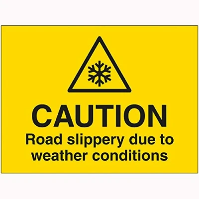 V Safety Caution Road Slippery Due To Weather Conditions Sign 600mm x 450mm 2mm Rigid Plastic