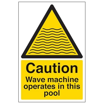 V Safety Caution Wave Machine Operate In This Pool Portrait 200 x 300mm 2mm Rigid Plastic Sign