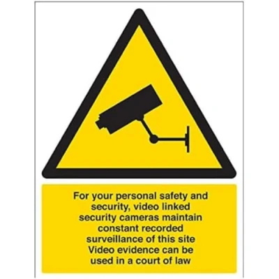 Helps to fulfil legal obligations to inform employees, visitors and the general public of potential hazards as per Health and Safety (Safety Signs & Signals) Regulations 1996 Conforms to EN ISO 7010:2012 - Warning signs feature a triangular symbol with a black pictogram and yellow background occupying at least 50% of the total sign area Portrait Orientation. Sign reads "For Your Personal Safety and Security, Video Linked Security Cameras Maintain Constant Recorded Surveillance Of This Site. Video Evidence Can Be Used In A Court Of Law" Highly durable Self Adhesive Vinyl material and screen printed message will stand the test of time Sign measures 300 x 400mm. Self Adhesive material will adhere securely to most surfaces