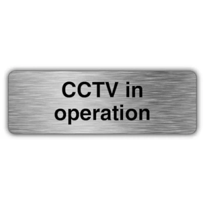 V Safety CCTV In Operation Slim Landscape Sign 300 x 100 mm 3mm Brushed Aluminium Composite