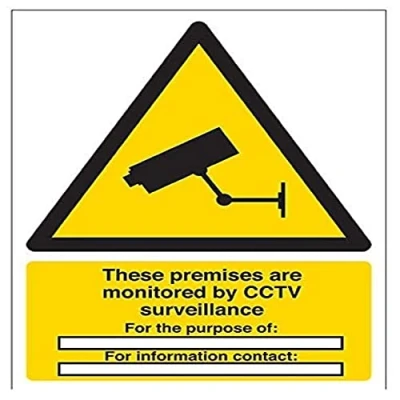 Helps to fulfil legal obligations to inform employees, visitors and the general public of potential hazards as per Health and Safety (Safety Signs & Signals) Regulations 1996 Conforms to EN ISO 7010:2012 - Warning signs feature a triangular symbol with a black pictogram and yellow background occupying at least 50% of the total sign area Portrait Orientation. Sign reads "These Premises Are Under CCTV Surveillance. For The Purpose Of. For Information Contact" Highly durable 1mm plastic material and screen printed message will stand the test of time Sign measures 150 x 200mm