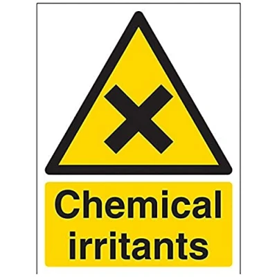 Helps to fulfil legal obligations to inform employees, visitors and the general public of potential hazards as per Health and Safety (Safety Signs & Signals) Regulations 1996 Conforms to EN ISO 7010:2012 - Warning signs feature a triangular symbol with a black pictogram and yellow background occupying at least 50% of the total sign area Portrait Orientation. Sign reads "Chemical Irritants" Highly durable Self Adhesive Vinyl material and screen printed message will stand the test of time Sign measures 150 x 200mm. Self Adhesive material will adhere securely to most surfaces