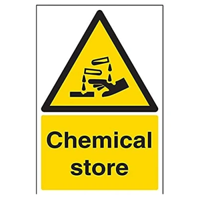 Helps to fulfil legal obligations to inform employees, visitors and the general public of potential hazards as per Health and Safety (Safety Signs & Signals) Regulations 1996 Conforms to EN ISO 7010:2012 - Warning signs feature a triangular symbol with a black pictogram and yellow background occupying at least 50% of the total sign area Portrait Orientation. Sign reads "Chemical Store" Highly durable Self Adhesive Vinyl material and screen printed message will stand the test of time Sign measures 200 x 300mm. Self Adhesive material will adhere securely to most surfaces