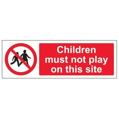 V Safety Children must not play on this site 900 x 300 Self Adhesive Vinyl Sign