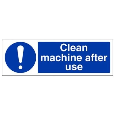 V Safety Clean Machine After Use Sign 300mm x 100mm 1mm Rigid Plastic