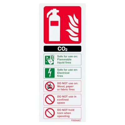 V Safety CO2 Extinguisher ID Portrait Sign 75 x 200 mm Self Adhesive Monomeric Vinyl