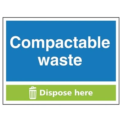 V Safety Compactable Waste Dispose Here 200 x 150 mm 1mm Rigid Plastic Sign