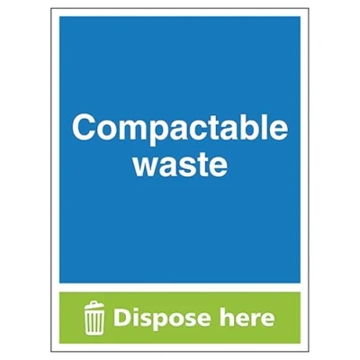 V Safety Compactable Waste Dispose Here Portrait 300 x 400 mm Self Adhesive Vinyl Sign