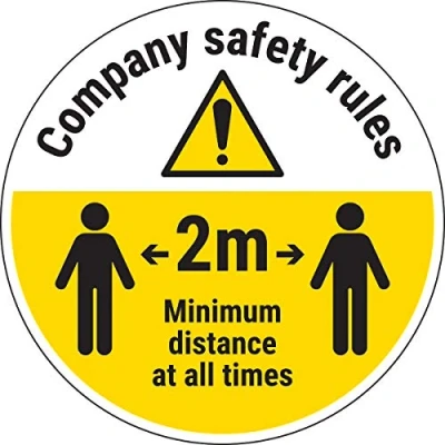 V Safety Company Rules Keep 2m Distance 300mm x Self Adhesive Floor Sticker