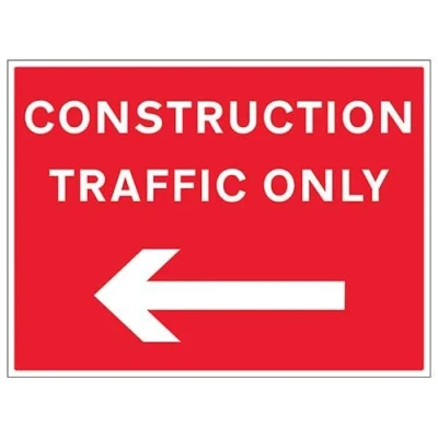 V Safety Construction Traffic Only, Arrow Right 3mm Alucomp Ra1 Antigraff 600x450mm