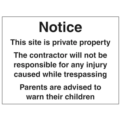 V Safety Contractor Will Not Be Responsible Large Landscape 400 x 300 mm 2mm Super Tough Rigid Plastic Sign