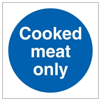 V Safety Cooked Meat Only 100 x mm Glow In The Dark 1mm Rigid Plastic Sign