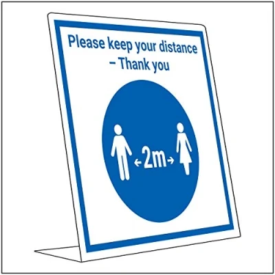 V Safety Covid Retail Desk Sign Keep Your Distance 200mm x 300mm 2mm Rigid Plastic