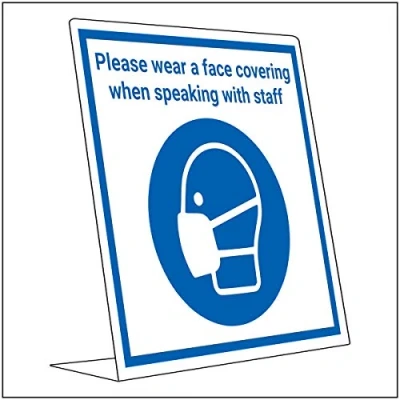 V Safety Covid Retail Desk Sign Please Wear Face Coverings 150mm x 200mm 2mm Rigid Plastic, multi