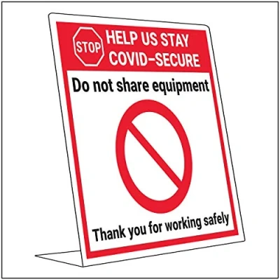 V Safety Covid Secure Desk Sign Do Not Share Equipment 150mm x 200mm 2mm Rigid Plastic