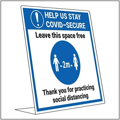 V Safety Covid Secure Desk Sign Leave Space Free 200mm x 300mm 2mm Rigid Plastic