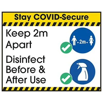 V Safety COVID Secure Sticker 2m Apart/Disinfect B4 100mm x 80mm Self Adhesive Vinyl