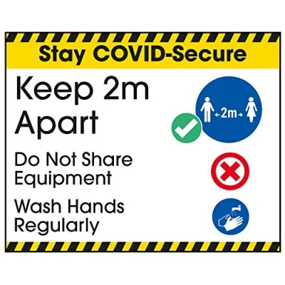 V Safety COVID Secure Sticker 2m Apart/Wash Hands 100mm x 80mm Self Adhesive Vinyl