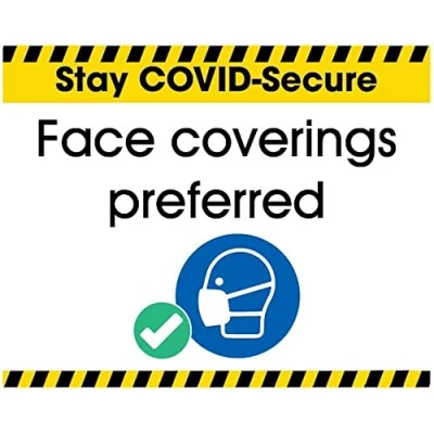 V Safety COVID Secure Sticker Face Coverings Preferred 100x80 mm Self Adhesive Vinyl Sign