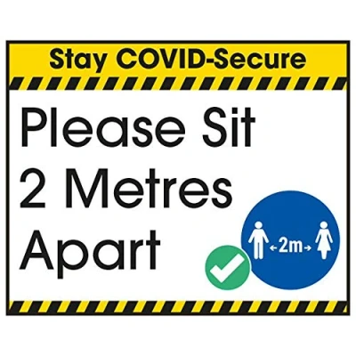 V Safety COVID Secure Sticker Sit 2m Apart 100mm x 80mm Self Adhesive Vinyl