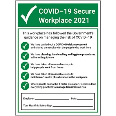 V Safety Covid Secure Workplace 300mm X 400mm Self Adhesive Vinyl