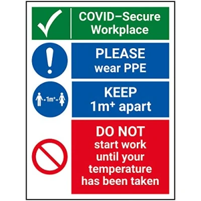 V Safety Covid Secure Workplace Please Wear PPE 150mm X 200mm 1mm Rigid Plastic