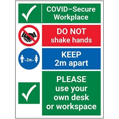 Striking design with clear messaging presents vital information with visual impact to reinforce recommended protocols around workplaces; Significantly more professional in appearance than self-printed materials Ideal for display around all types of workplace - demonstrates a commitment to enforcing necessary hygiene practices to maintain a Covid-secure environment Compliant to the signs and signals regulations and EN ISO 7010:2012 where applicable. Unlike many other products on the market, these safety signs present critical information in a method consistent with all other compliant health and safety signs Highly durable - made from either durable rigid plastic or self-adhesive flexible vinyl; Easy to apply - both sign types come with their own adhesive which is suitable for smooth, non-porous surfaces. Rigid plastic signs can be fixed to other surfaces using screws (not supplied), Manufacturer: VSafety
