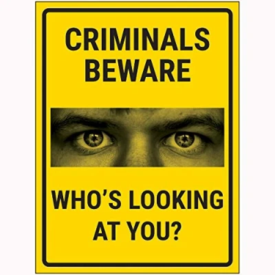 V Safety Criminals Beware Who's Looking At You? Sign 200x300mm 3mm Alu Comp With Channel