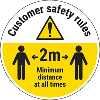 V Safety Customer Rules Keep 2m Distance 300mm x Self Adhesive Floor Sticker