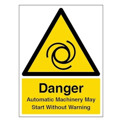 V Safety Danger Automatic Machinery May Start Portrait 200 x 300 mm Self Adhesive Vinyl Sign