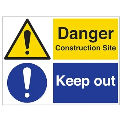 V Safety Danger Construction Site/Keep Out 400 x 300 mm 1mm Rigid Plastic Sign