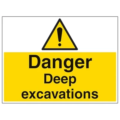 V Safety Danger Deep Excavations Large Landscape 600 x 450 mm Glow In The Dark Self Adhesive Vinyl Sign