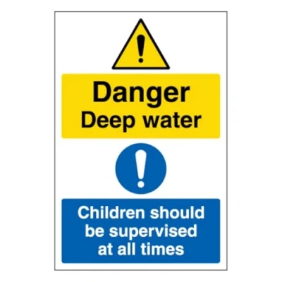 V Safety Danger Deep Water Children Should Be Supervised At All Times Portrait 200 x 300mm 2mm Rigid Plastic Sign
