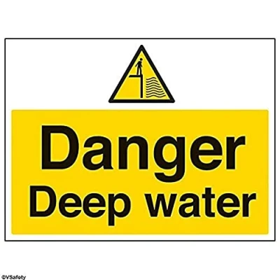 Ideal for use in kitchens and toilets to highlight any sources of hot water which could scald or injure Conforms to EN ISO 7010:2012 - Warning signs feature a triangular symbol with a black pictogram and yellow background occupying at least 50% of the total sign area Landscape Orientation. Sign reads "Danger. Deep Water" Highly durable Self Adhesive Vinyl material and screen printed message will stand the test of time Sign measures 400 x 300mm. Self Adhesive material will adhere securely to most surfaces