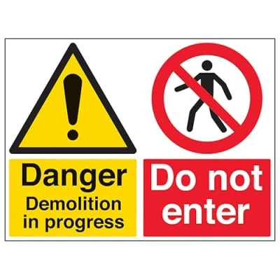 V Safety Danger Demolition/Do Not Enter Large Landscape 600 x 450 mm Glow In The Dark Self Adhesive Vinyl Sign