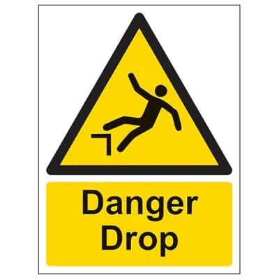 V Safety Danger Drop Portrait 150 x 200 mm Glow In The Dark 1mm Rigid Plastic Sign