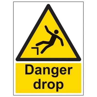 Helps to fulfil legal obligations to inform employees, visitors and the general public of potential hazards as per Health and Safety (Safety Signs & Signals) Regulations 2014 Conforms to EN ISO 7010: 2012 - Warning signs feature a triangular symbol with a black pictogram and yellow background occupying at least 50% of the total sign area Portrait Orientation. Sign reads "Danger. Drop" Printed on strong 2mm thick white High Impact Polystyrene (HIPS) plastic - ideal for outdoor use