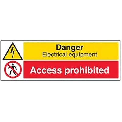 V Safety Danger, Electrical Equipment/Access Prohibited Sign 600mm x 200mm 1mm Rigid Plastic