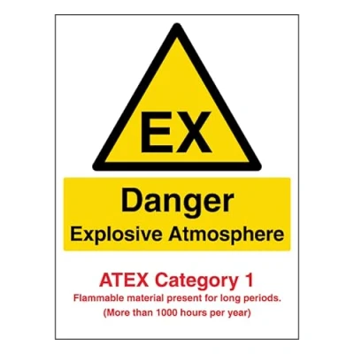 V Safety Danger Explosive Atmosphere Atex Category 1 Portrait 300 x 400 mm Self Adhesive Vinyl Sign