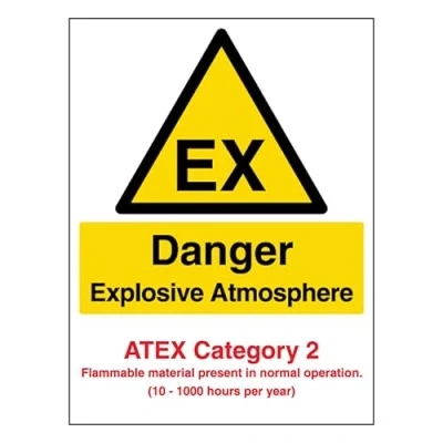 V Safety Danger Explosive Atmosphere Atex Category 2 Portrait 300 x 400 mm Self Adhesive Vinyl Sign