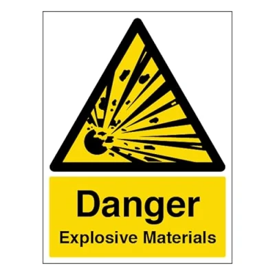 V Safety Danger Explosive Materials Portrait 150 x 200mm 1mm Rigid Plastic Sign