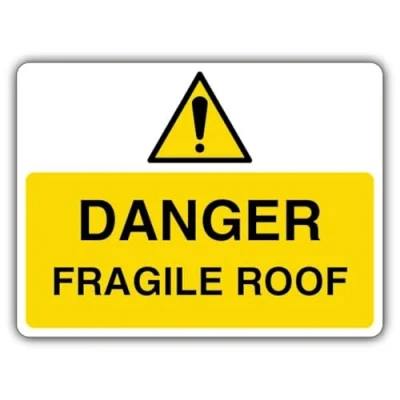 2MM RIGID PLASTIC – Extra‑thick rigid plastic sheet providing added strength and stiffness, ideal for larger safety signs in warehouses, factories and outdoor locations where a more robust panel is required. PREVENTS ROOFTOP ACCIDENTS: Fragile roof signs give essential warnings that surfaces cannot safely support weight, helping protect workers and the public by preventing unauthorised access, reducing fall risks, and supporting safer site management. DANGER SIGNAGE – Recommended wherever a hazard could cause serious injury or death, these signs clearly mark high‑risk areas so employees, contractors and visitors are alerted in time to avoid the danger and follow strict precautions. QUALITY PRINT – Professionally designed and printed using high‑resolution artwork and durable UV‑stabilised inks, giving a crisp, long‑lasting finish that looks significantly more professional than home‑printed paper or laminates. MADE IN BRITAIN – Made in Britain using premium materials and specialist print processes, ensuring robust, professional‑quality signs that support UK jobs and meet local workplace safety expectations.
