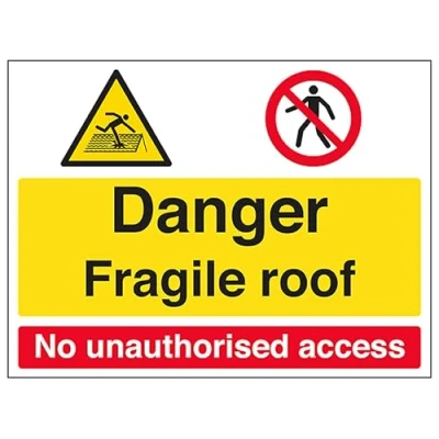 V Safety Danger/Fragile Roof/No Unauthorised Access 400 x 300 mm 1mm Rigid Plastic Sign