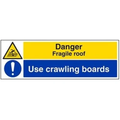 V Safety Danger, Fragile Roof/Use Crawling Boards Sign 600mm x 200mm 1mm Rigid Plastic