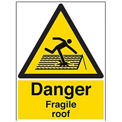 V Safety Danger Fragile Roof Warning Sign 450mm x 600mm 2mm Rigid Plastic
